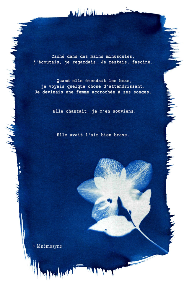 Association du Cyanotype, procédé photographique ancien et de la poésie, les Cartes Postales Poétiques de la collection Cyanotypes Poétiques parlent de bienveillance envers soi-même, de confiance en soi et d’amour. Les mots, délicats, doux se fondent parfaitement dans les décors végétaux conçus pour embellir le texte.